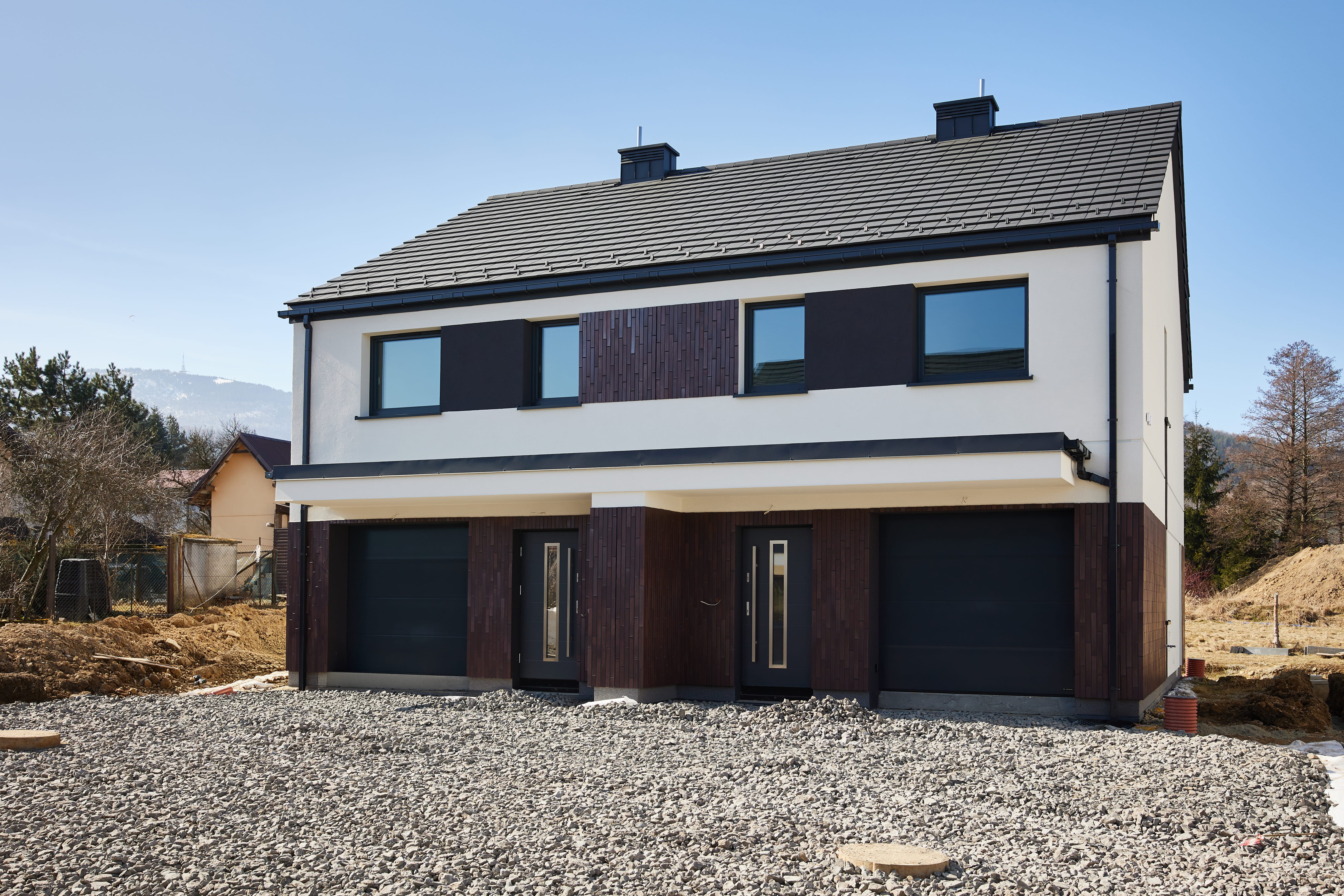 Każdy dom posiada własny garaż oraz ogródek